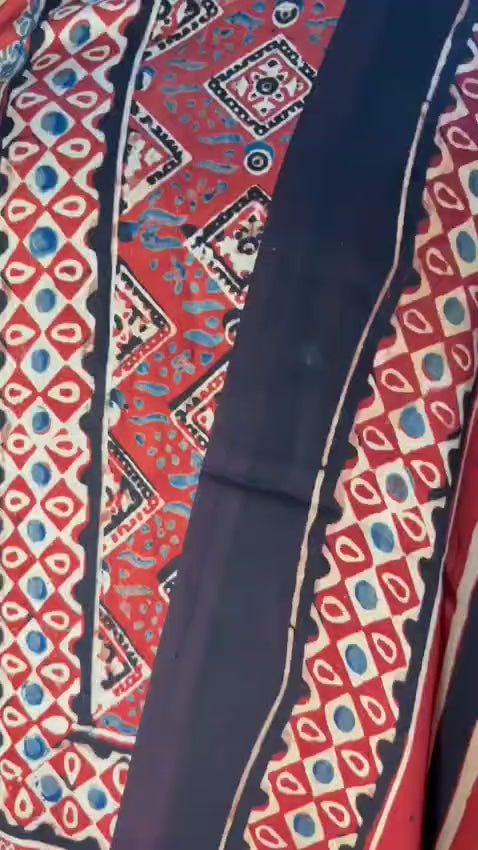 Ajrakh Handblock Printed Modal Suit- Red Ajm1