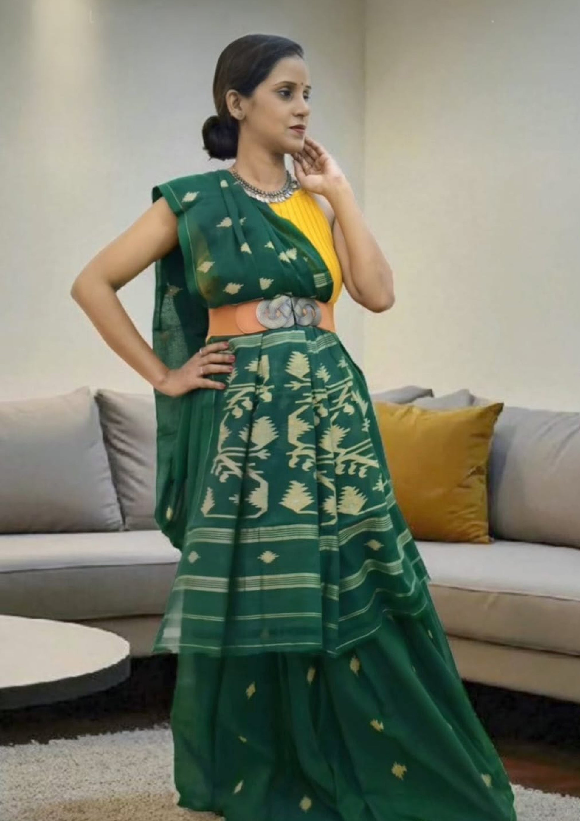 Adorn yourself with the exquisite Handloom Cotton Jamdani Sarees, renowned for their lightweight feel and intricate patterns. These sarees, crafted by skilled artisans in West Bengal, showcase a perfect blend of tradition and contemporary elegance. Each piece reflects meticulous craftsmanship, making it a timeless addition to any wardrobe, ideal for both casual and festive occasions.