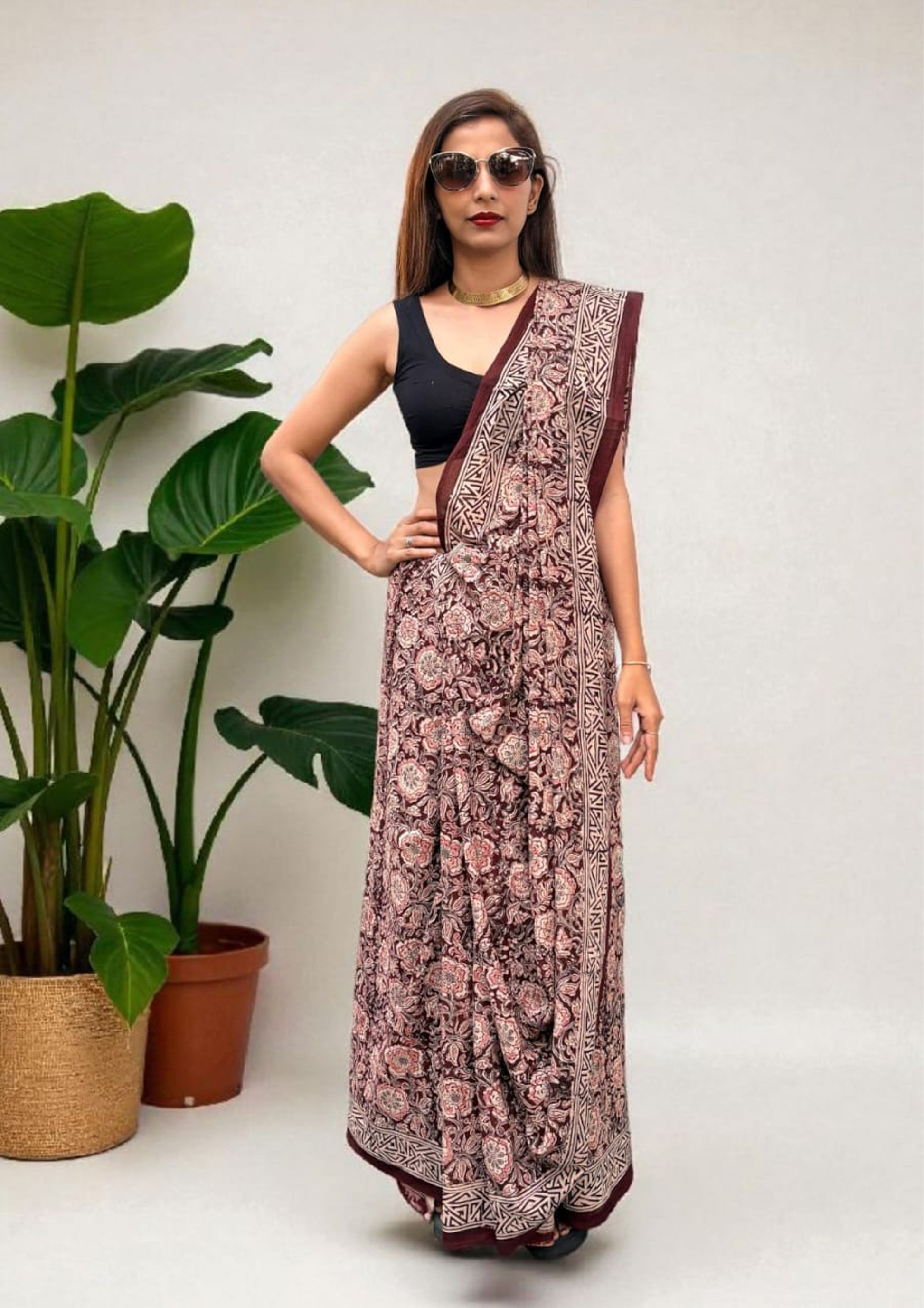 Celebrate slow fashion with our Handblock Printed Kalamkari Sarees — sustainable, soulful, and stunningly handcrafted. Designed for the woman who values art in every detail.