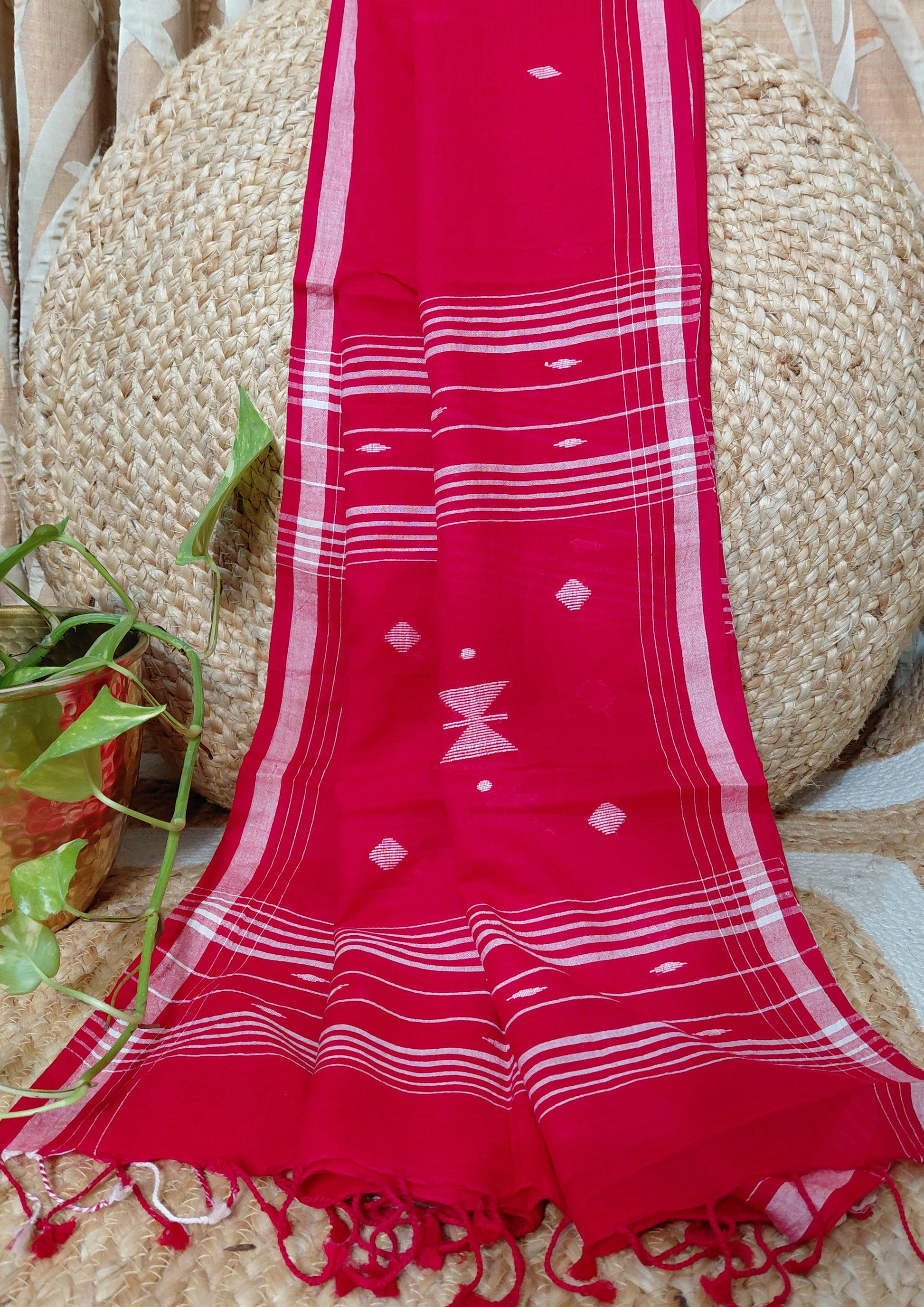Jamdani Stole- Red HJ31