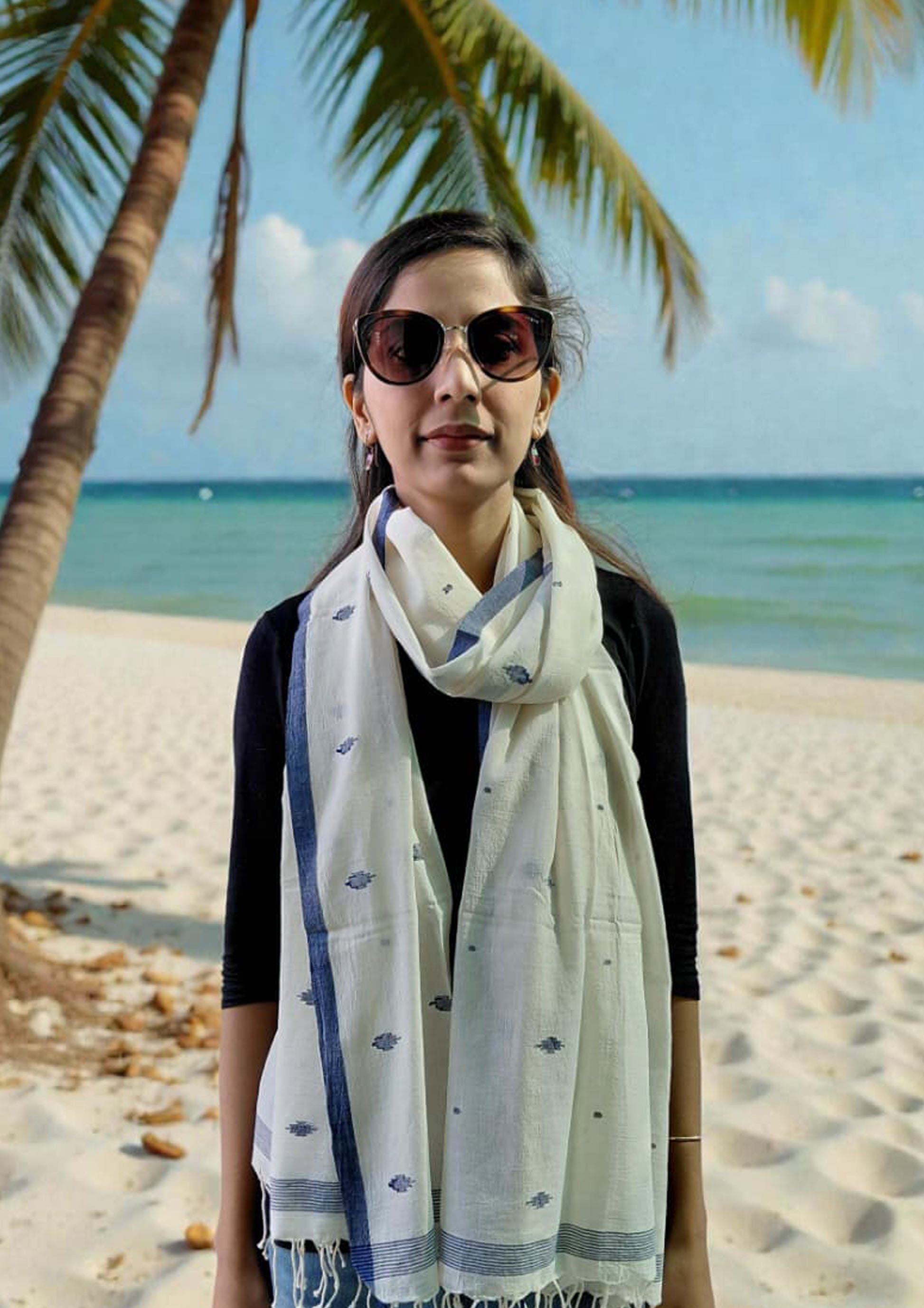 Our handloom cotton Jamdani stoles are a perfect fusion of luxury and comfort. Known for their feather-light feel and unparalleled softness, these stoles drape effortlessly, making them your go-to accessory for any occasion. Let the timeless charm of Jamdani elevate your style effortlessly!