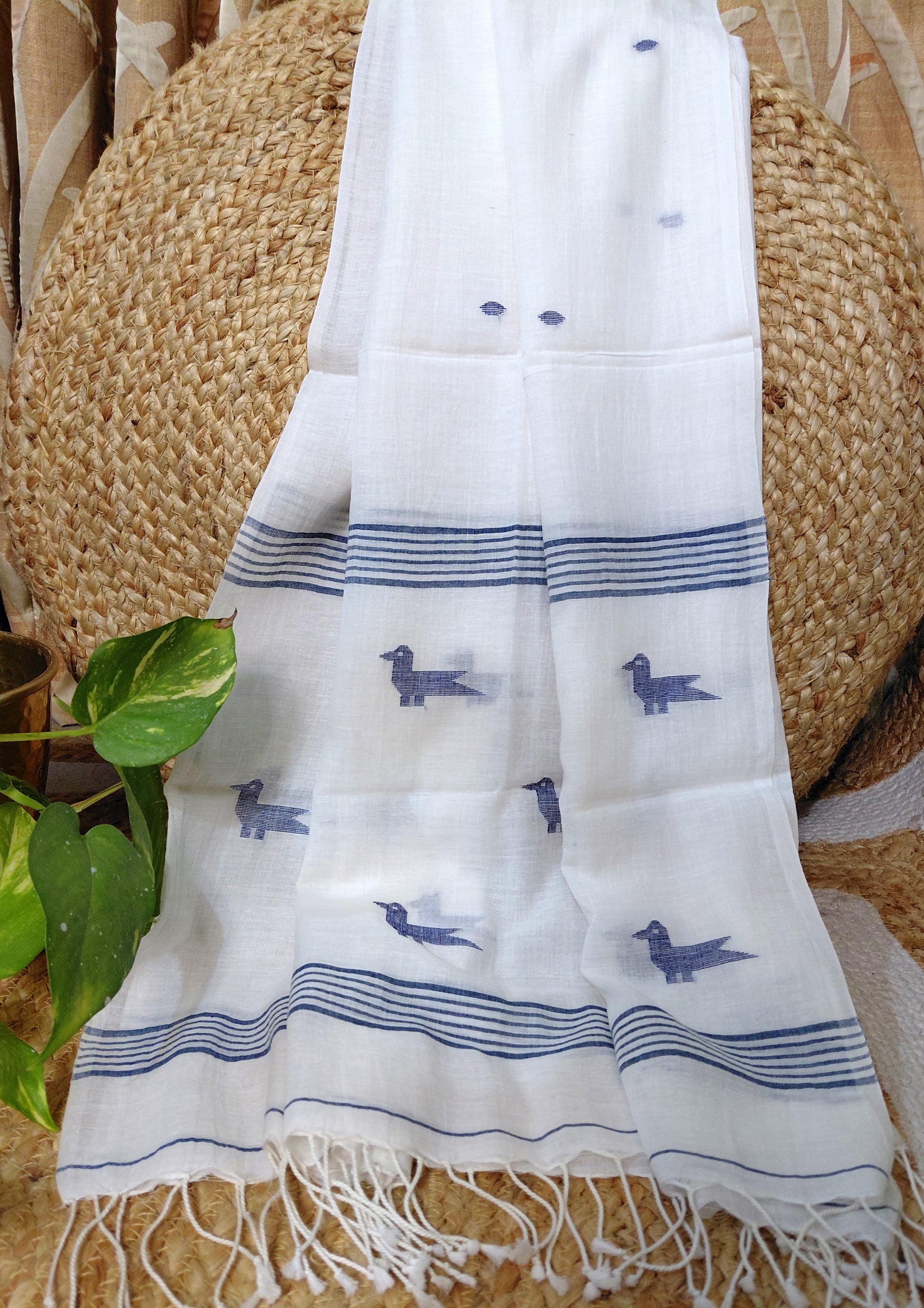 Our handloom cotton Jamdani stoles are a perfect fusion of luxury and comfort. Known for their feather-light feel and unparalleled softness, these stoles drape effortlessly, making them your go-to accessory for any occasion. Let the timeless charm of Jamdani elevate your style effortlessly!