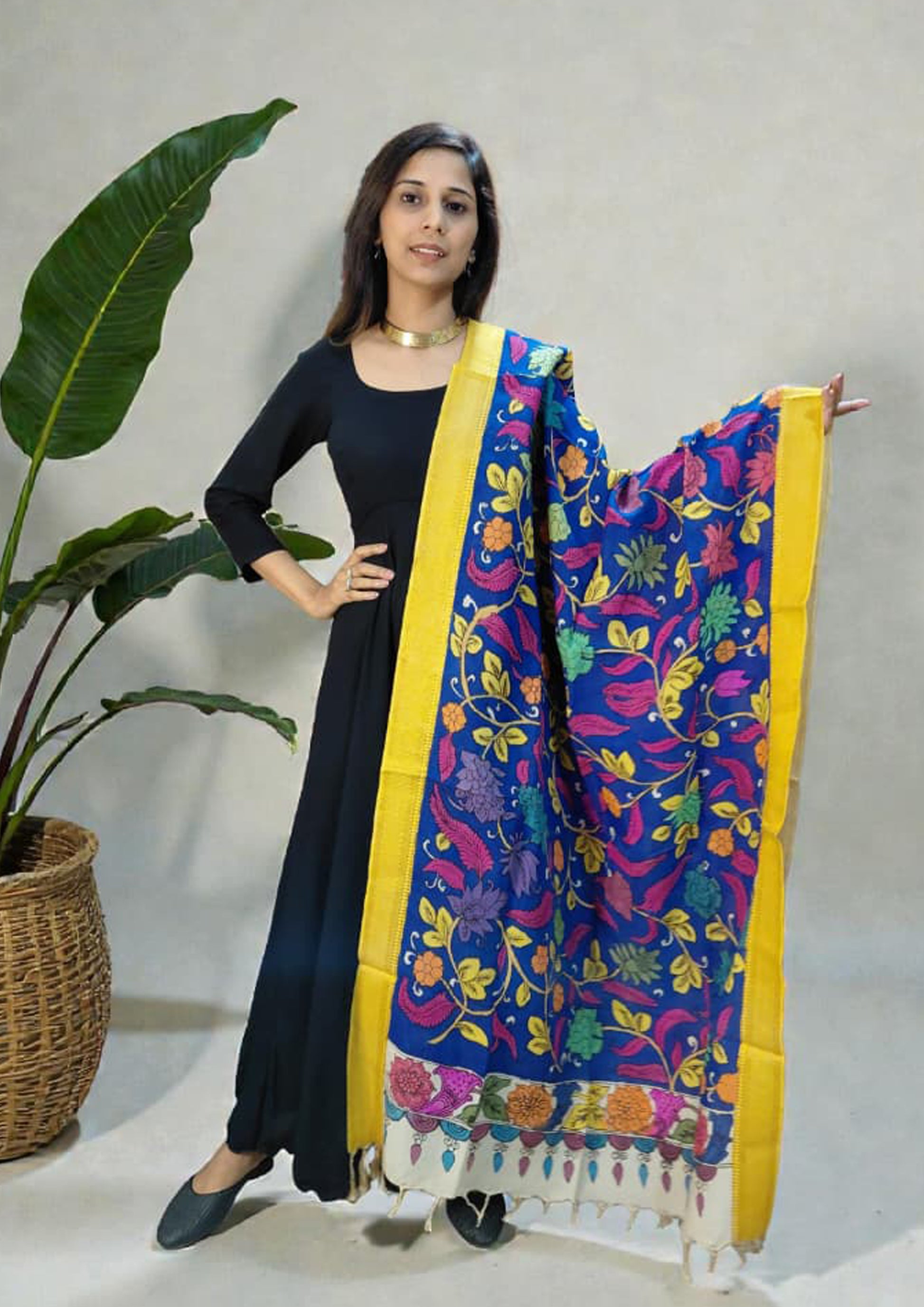 Kalamkari Handpainted Dupatta- Blue K15