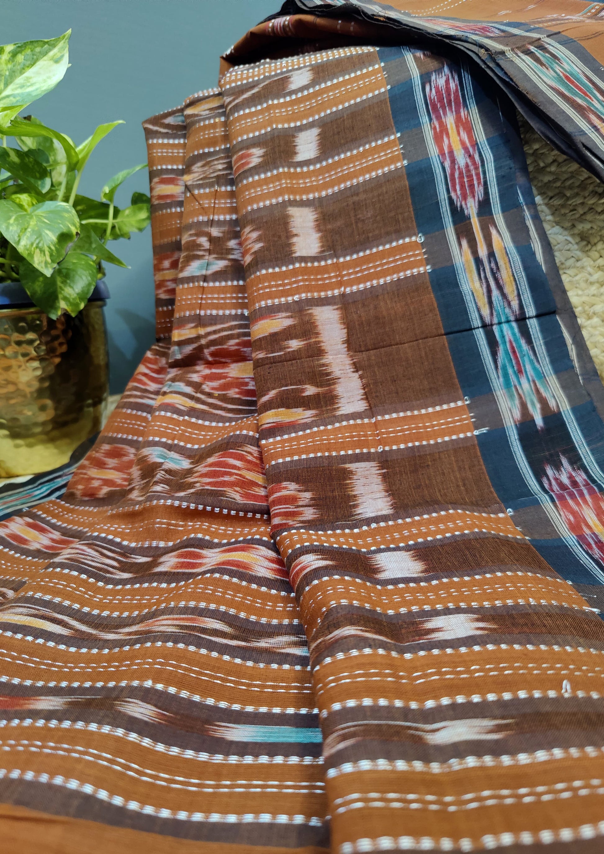 Experience the best of traditional Indian art with our Handloom cotton sarees. These exquisite pieces are intricately woven using a technique that involves tying, dyeing, and weaving threads, resulting in stunning, blurred patterns. Each saree is a perfect blend of heritage and elegance, making it a must-have in every fashionista's wardrobe.