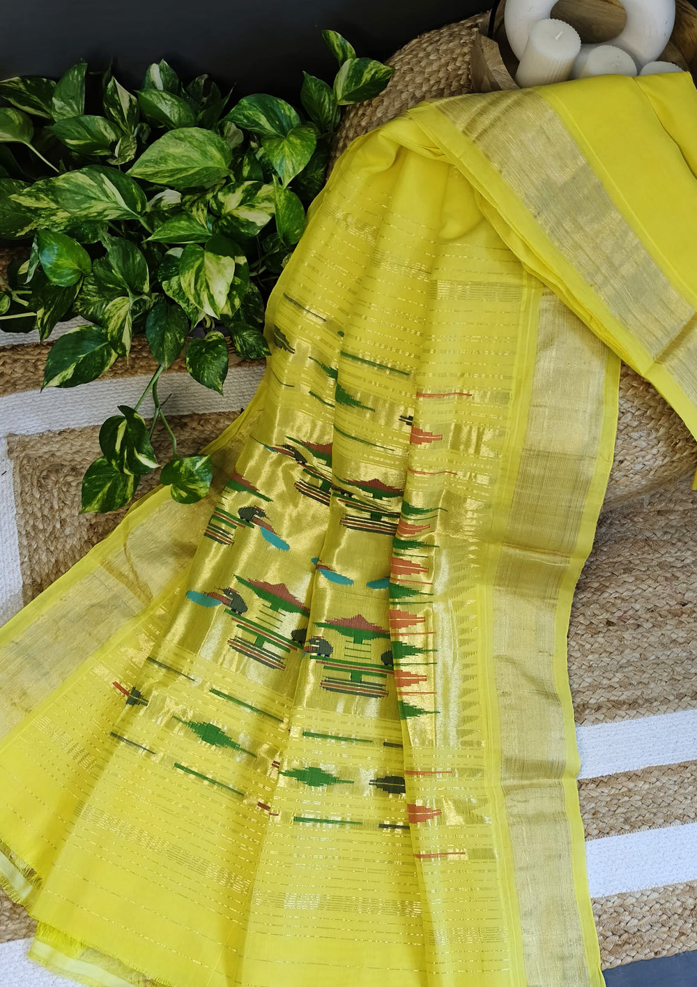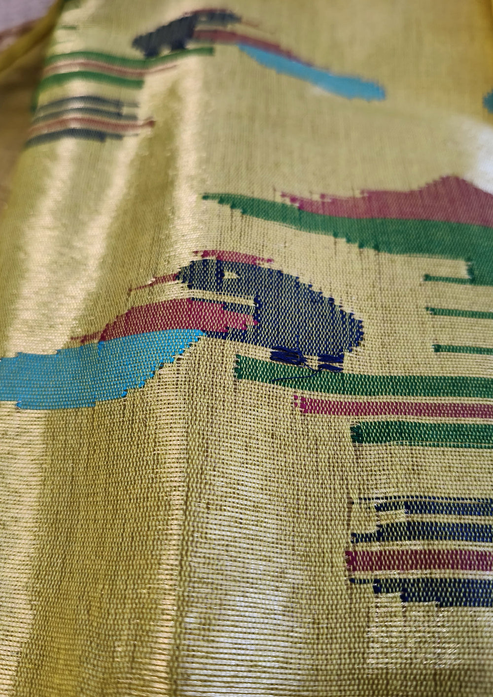 Experience the timeless elegance of Handloom Paithani sarees, crafted in the heart of Paithan, Maharashtra. These sarees, made from fine silk/cotton and enriched with golden zari, stand out for their stunning peacock and lotus motifs. Each motif is woven using a traditional tapestry technique, showcasing the artistry and heritage of Indian handloom.